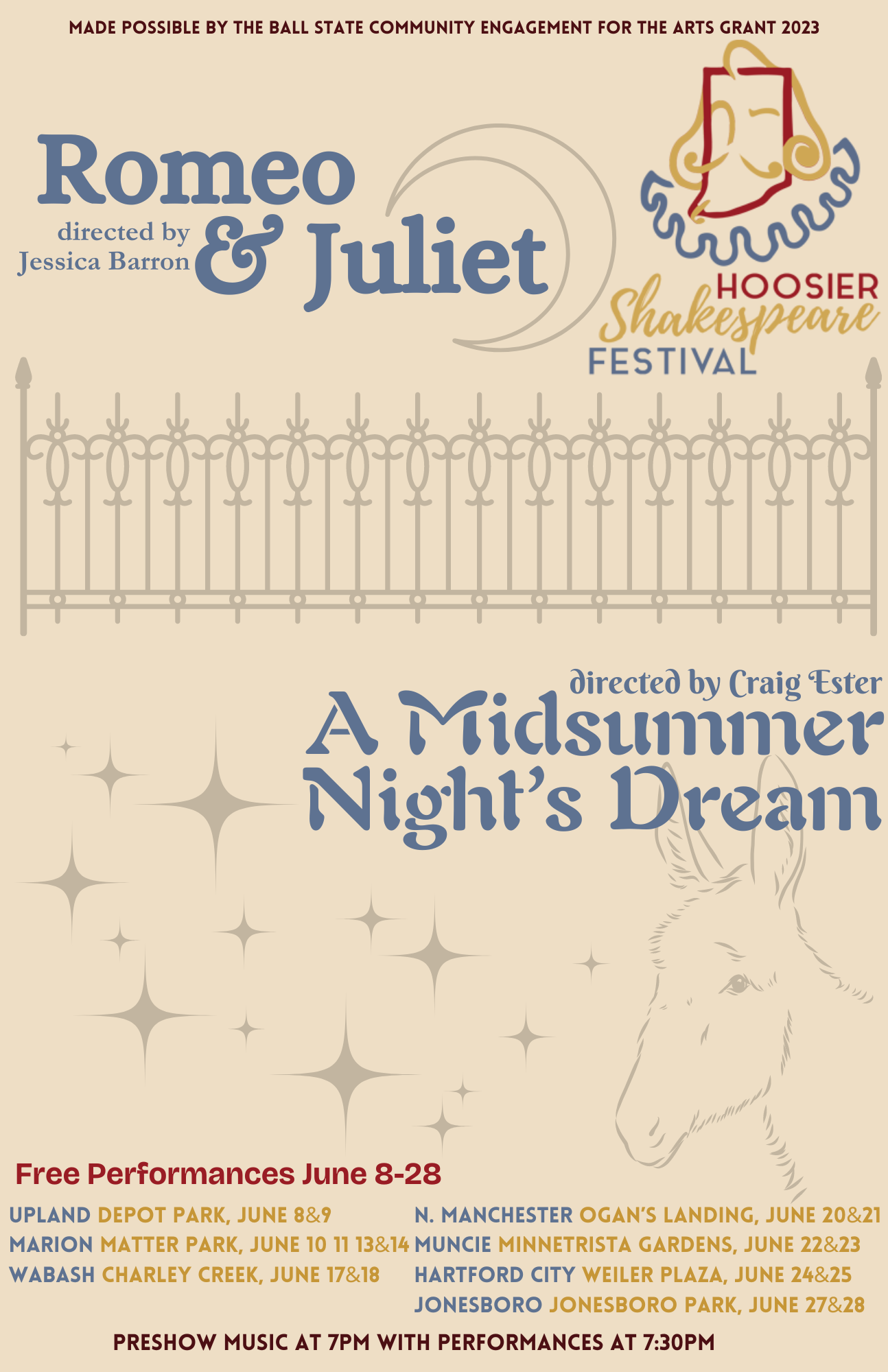 This year’s HSF season has been paid for, in part, by the Ball State University Community Engagement in the Arts Grant 2023.