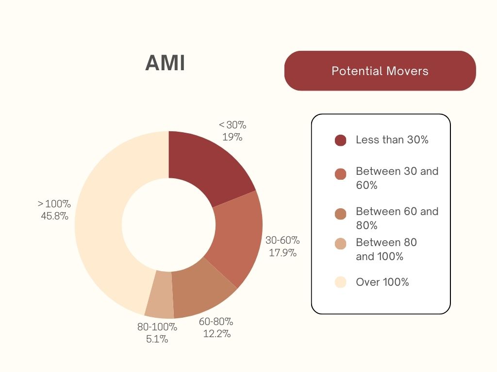All three of these groups have on average above 100% Area Median Income (AMI) when looking for housing options.