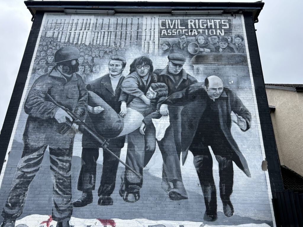 Murals line the Bogside, the marshland outside the inner city, picturing the violence and prominent figures that arose from the years of its growing division. One event shown is Bloody Sunday.